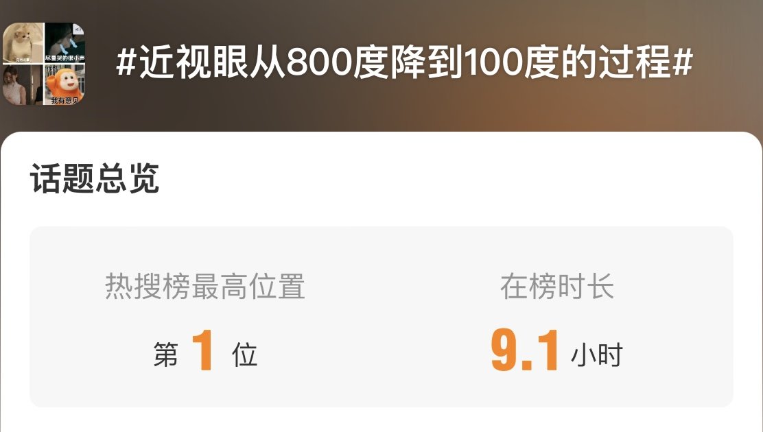 最近,一个话题为#近视眼从800度降到100度的过程#冲上热搜第一,引起数百万网友的讨论。