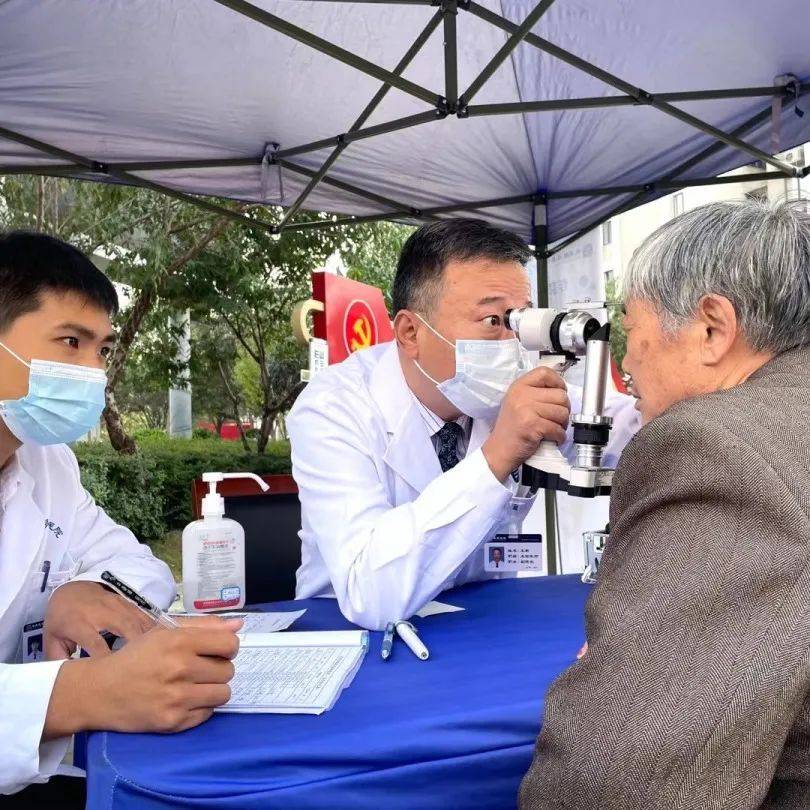 郑州卓美眼耳鼻喉医院业务院长王新主任为居民做眼部检查,耐心解答居民问诊。